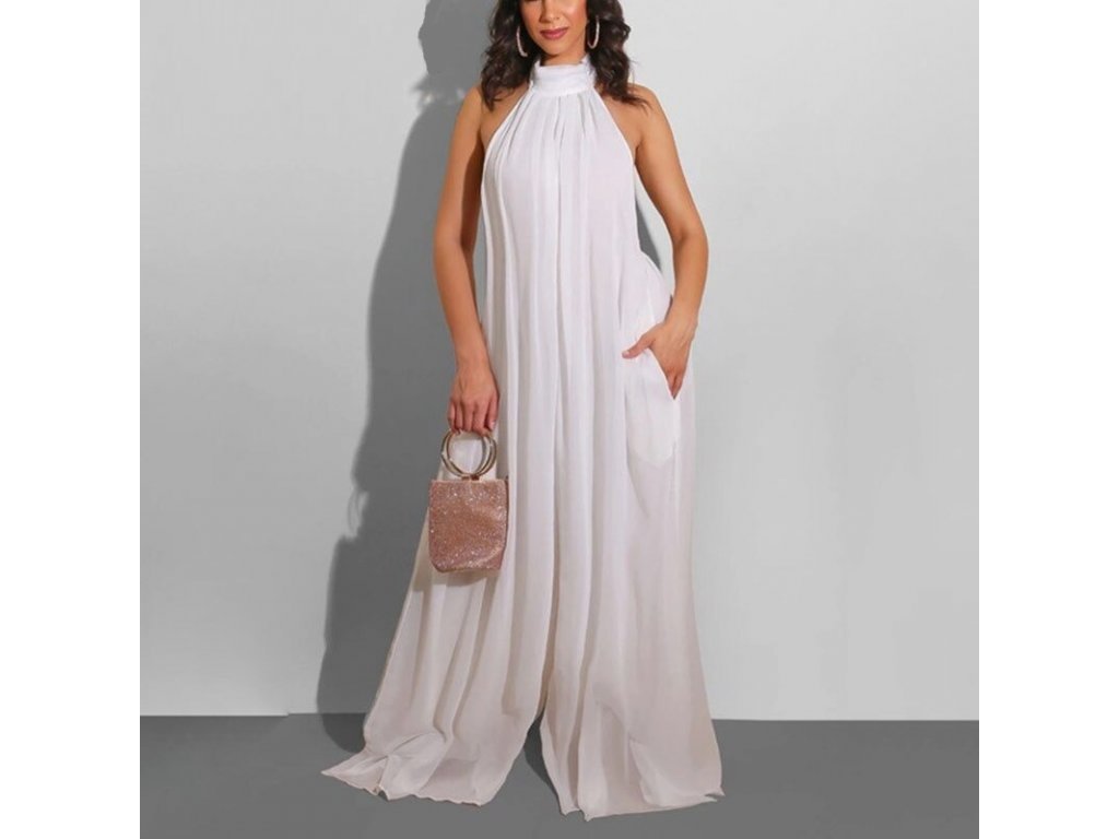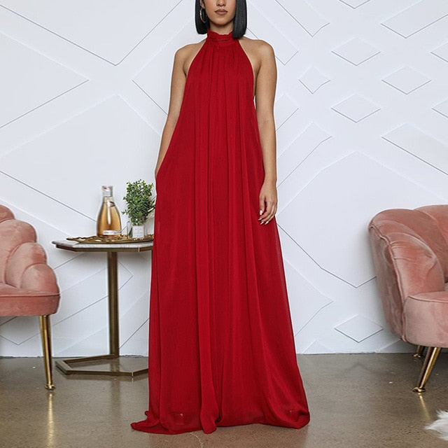 Stand out in this chiffon backless halter jumpsuit. The flow of the material behind you when walking will set you apart from everyone else!! Wear this with your tallest heels and stand tall. Available in Black, White and Red. S, M, L, XL